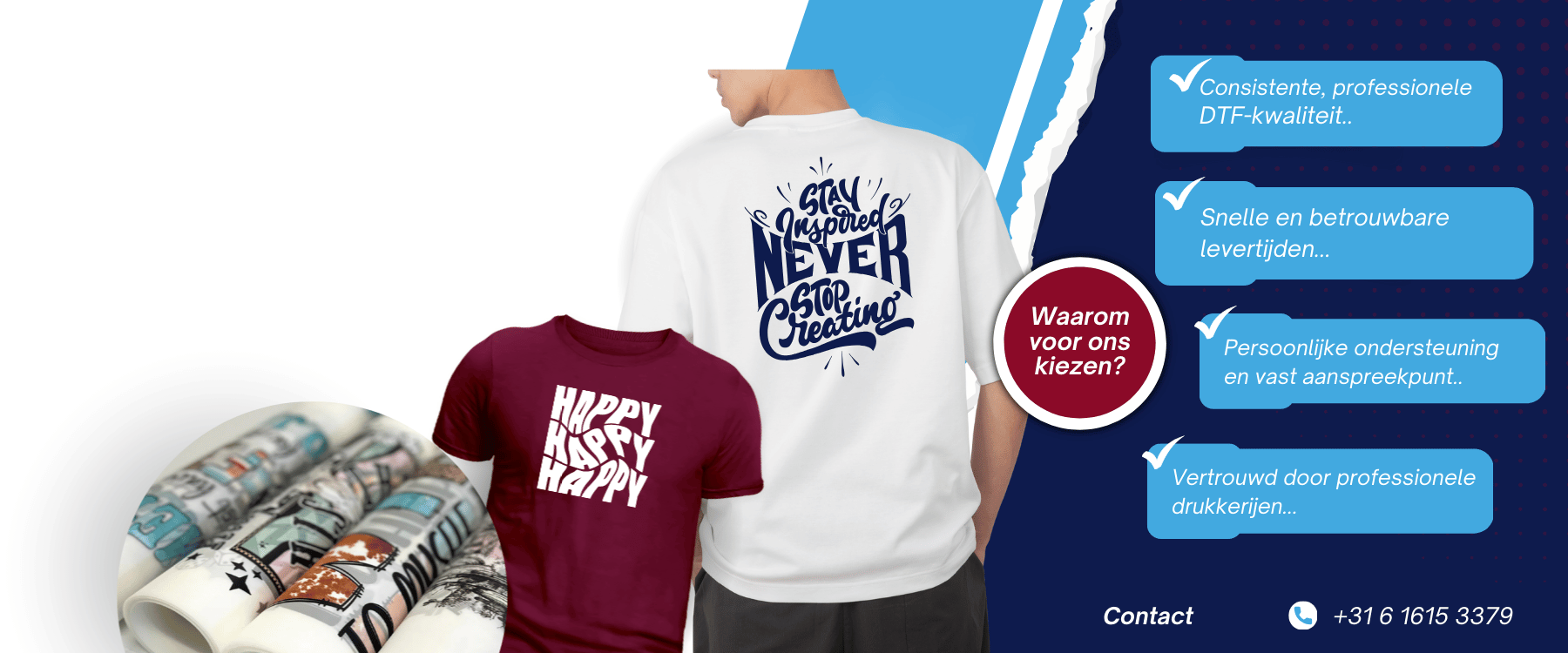 Ontvang 1 meter DTF gratis en ervaar onze kwaliteit zelf. Geen verplichtingen, volledig risicoloos.